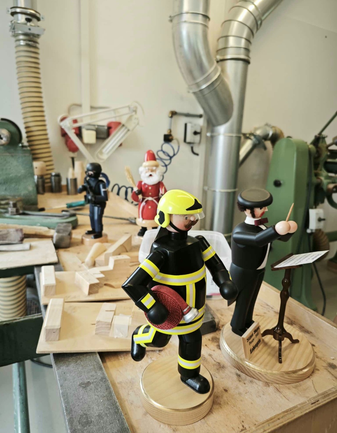 Am Zielort angekommen, erhielten wir eine Führung durch die Werkstatt der Kunsthandwerkerin Eva Beyer. Diese erzählte uns sehr viel Interessantes zur Herstellung ihrer Räucherfiguren und verdeutlichte uns, wie viel Arbeit und Zeit investiert werden muss, bis eine fertig ist. Die vielen detailreichen Darstellungen verschiedenster Berufe und Kreaturen in ihrer Schauwerkstatt entlockten dem einen oder anderen von uns ein Lächeln. Mit einem Ständchen bedankten wir uns für die tolle und informative Führung.